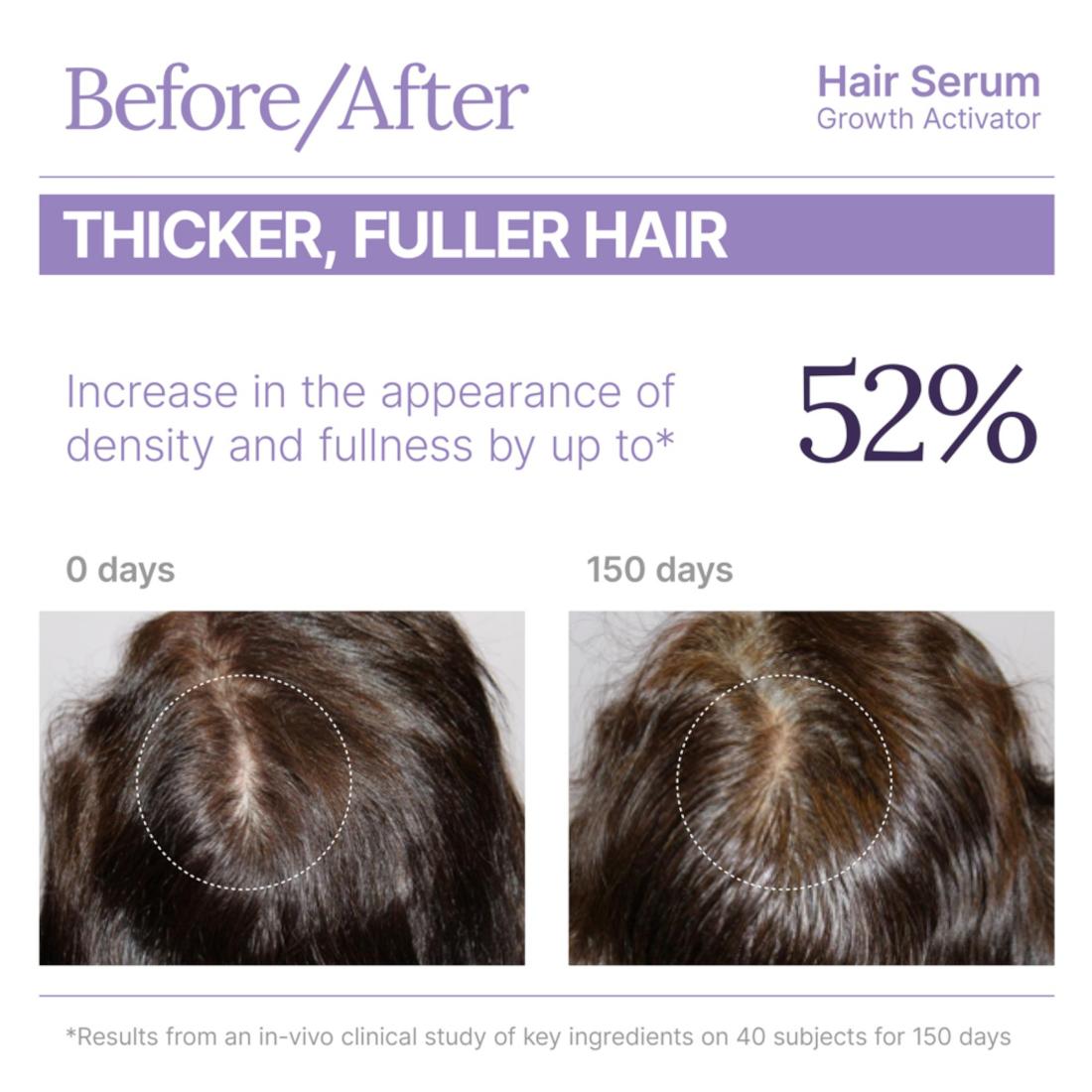 - 92% of users saw improvement in hair density. (Results from an in-vivo clinical study of key ingredients on 26 panelists, split into 2 groups, double-blinded vs placebo, for 112 days)