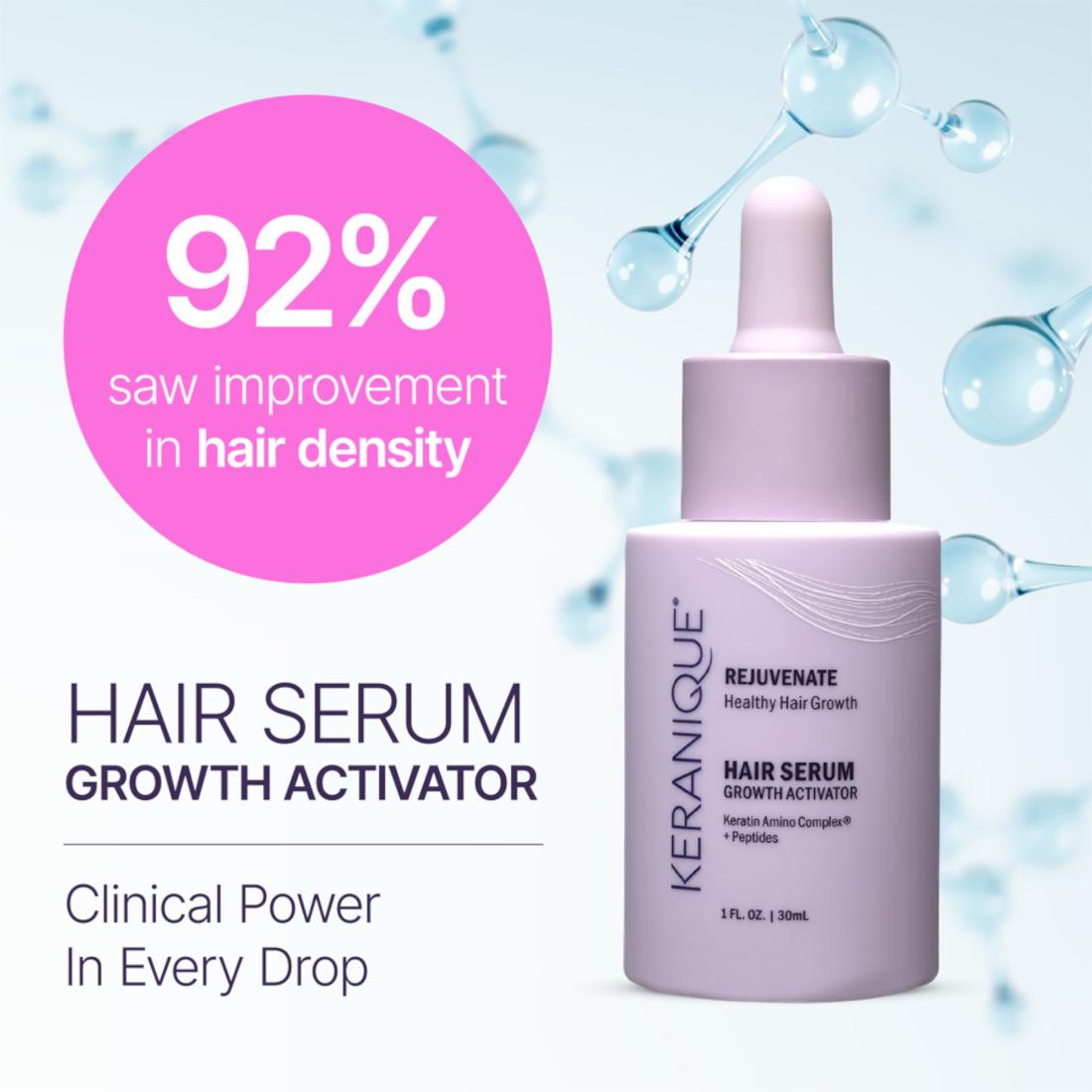 A breakthrough in scalp and hair support, this fast-absorbing, lightweight hair serum has been formulated with Keranique's proprietary Keratin Amino Complex, Peptides, and Biotin to boost natural cell renewal and activate thicker-looking, stronger-feeling hair in just 45 days!