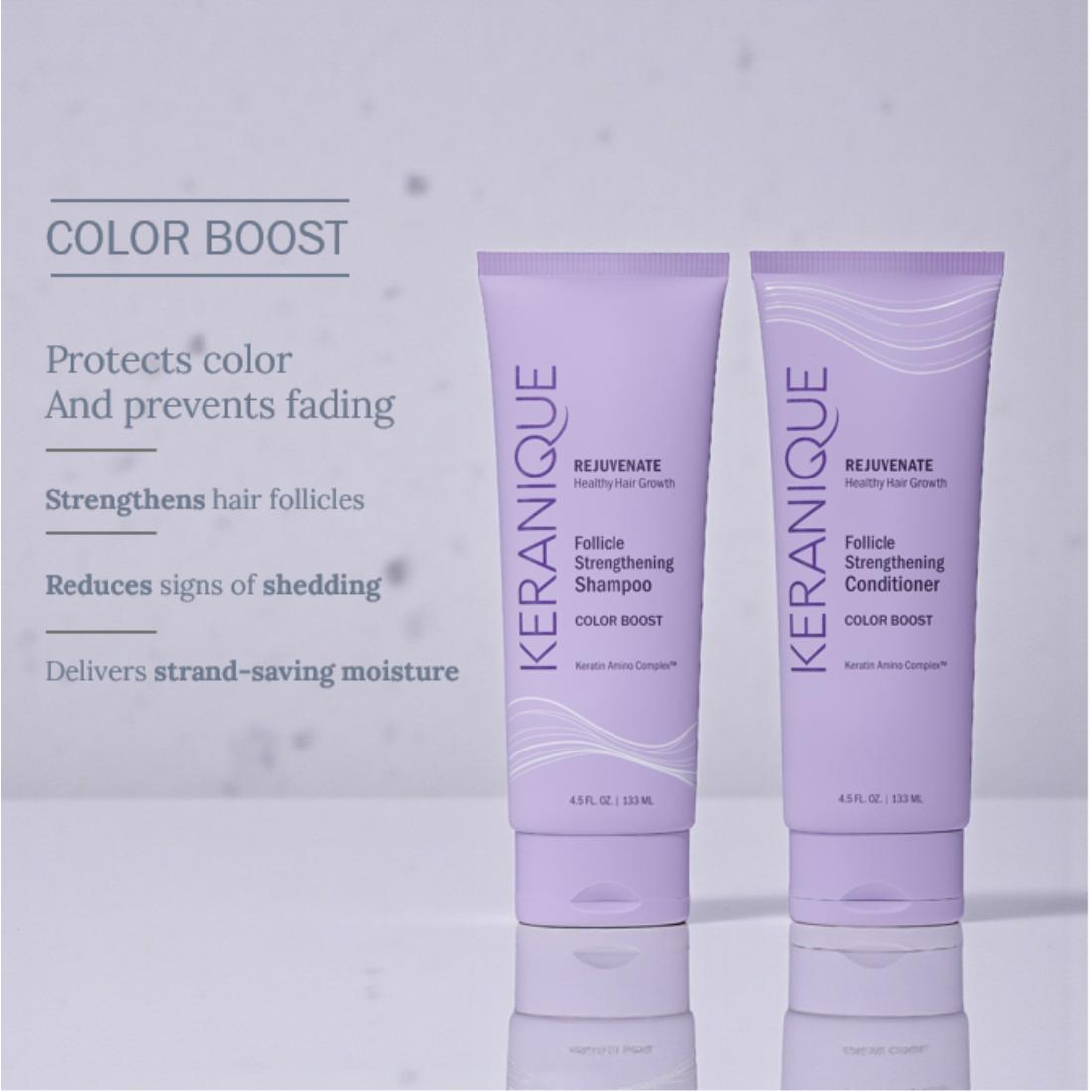 - Follicle Strengthening Color Boost Shampoo contains ingredients that are designed to help create lustrous, healthy-looking hair, and provide manageability and frizz-control.