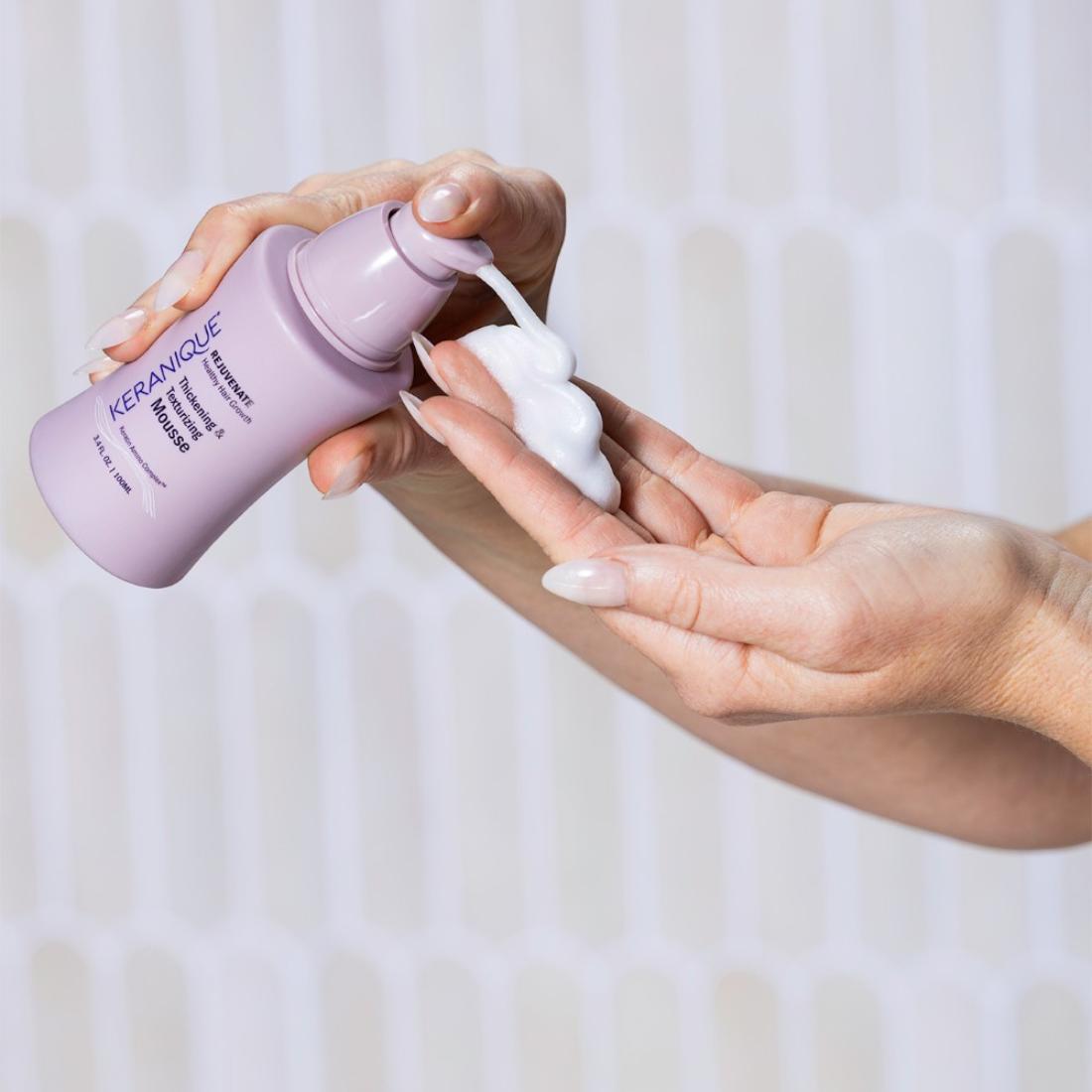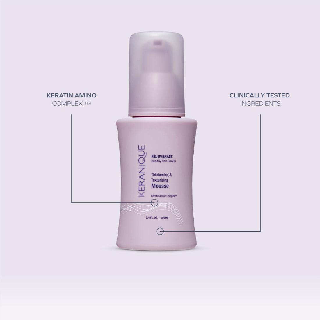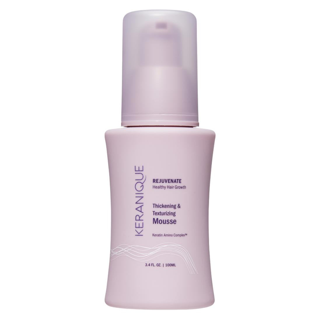 KERANIQUE® Thickening & Texturizing Mousse Revitalize fine, thinning hair with our lightweight volumizing mousse. Designed for natural fullness, it boosts body and strength, protecting hair against breakage. Enjoy soft, bouncy hair that stays full all day.